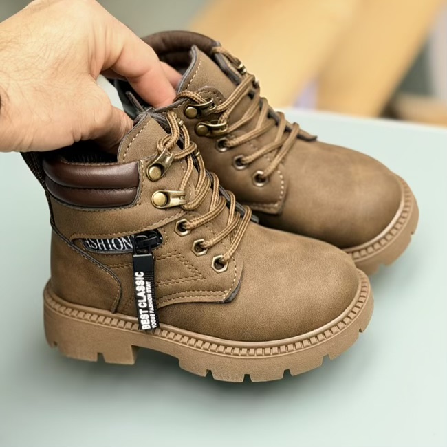 بوت بچگانه وارداتی چرمی طرح بغل زیپ برند Kids